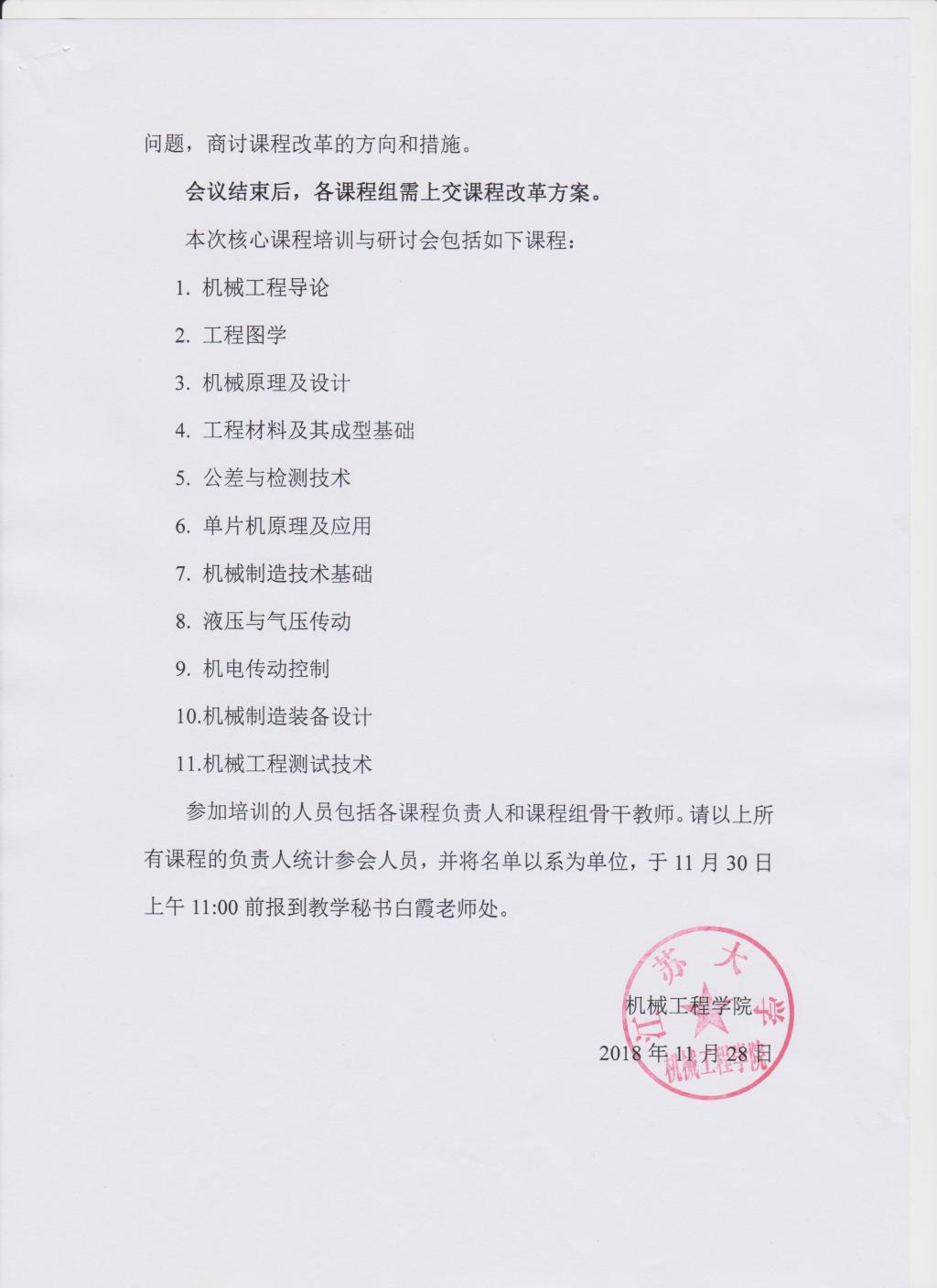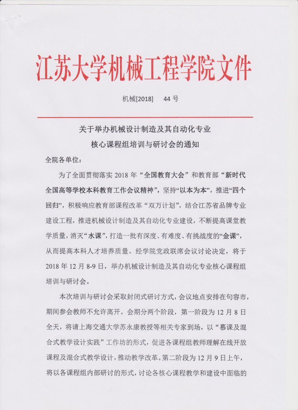 关于举办机械设计制造及其自动化专业核心课程组培训与研讨会的通知