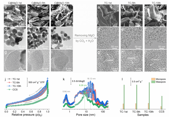 图2. 去除MgO模板前后,TC-1st、TC-5th和TC-10th形貌和结构演化。