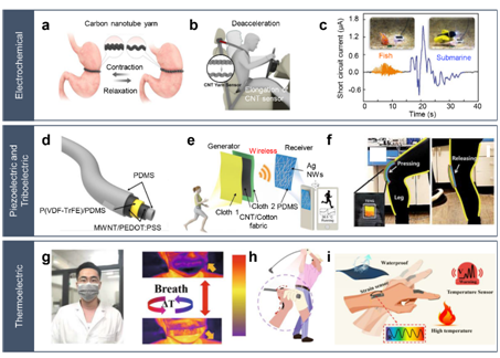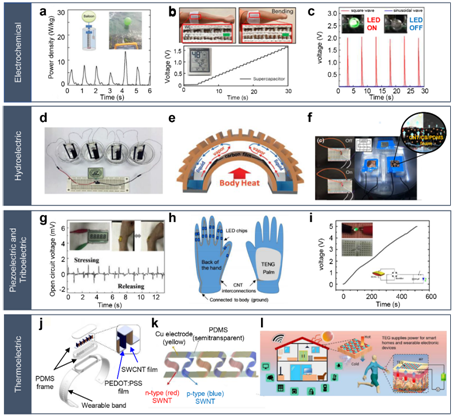 图1.不同能源输入形式的CNT基发电器件总述