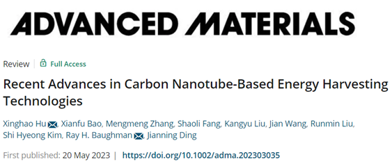 近日,yl6809永利官网集团胡兴好副教授等人在《Advanced Materials》上发表题为“Recent Advances in Carbon Nanotube-Based Energy Harvesting Technologies”的综述文章。该文全面回顾了基于CNT的能源收集技术,包括电化学、水伏、摩擦电、压电以及热电发电机。重点阐述了不同发电技术的工作原理、典型实例以及未来挑战和发展方向。论文第一作者为yl6809永利官网集团胡兴好副教授、硕士生鲍先富和美国德克萨斯大学达拉斯分校博士后张蒙蒙,通讯作者为yl6809永利官网集团胡兴好副教授和德克萨斯大学达拉斯分校RayH. Baughman院士,yl6809永利官网集团为第一完成单位。