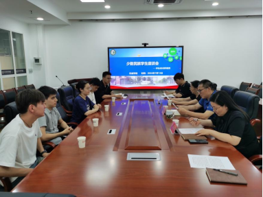 为进一步促进民族团结,深入了解少数民族学生的学习与生活状况,机械学院于7月13日下午,在机械楼B414会议室开展了少数民族学生座谈会暨铸牢中华民族共同体意识 促进各民族交流交融会。此次座谈会旨在搭建一个交流与分享的平台,让少数民族学生感受到学院的温暖与关怀,同时增强他们的归属感和幸福感。座谈会由辅导员黄国庆主持,学院党委书记潘红军,党委副书记、副院长张黎明,关工委老教师戴立玲,辅导员姬光睿、黄琦涛,新疆维吾尔族三名学生代表、一名苗族学生代表参加了此次活动。