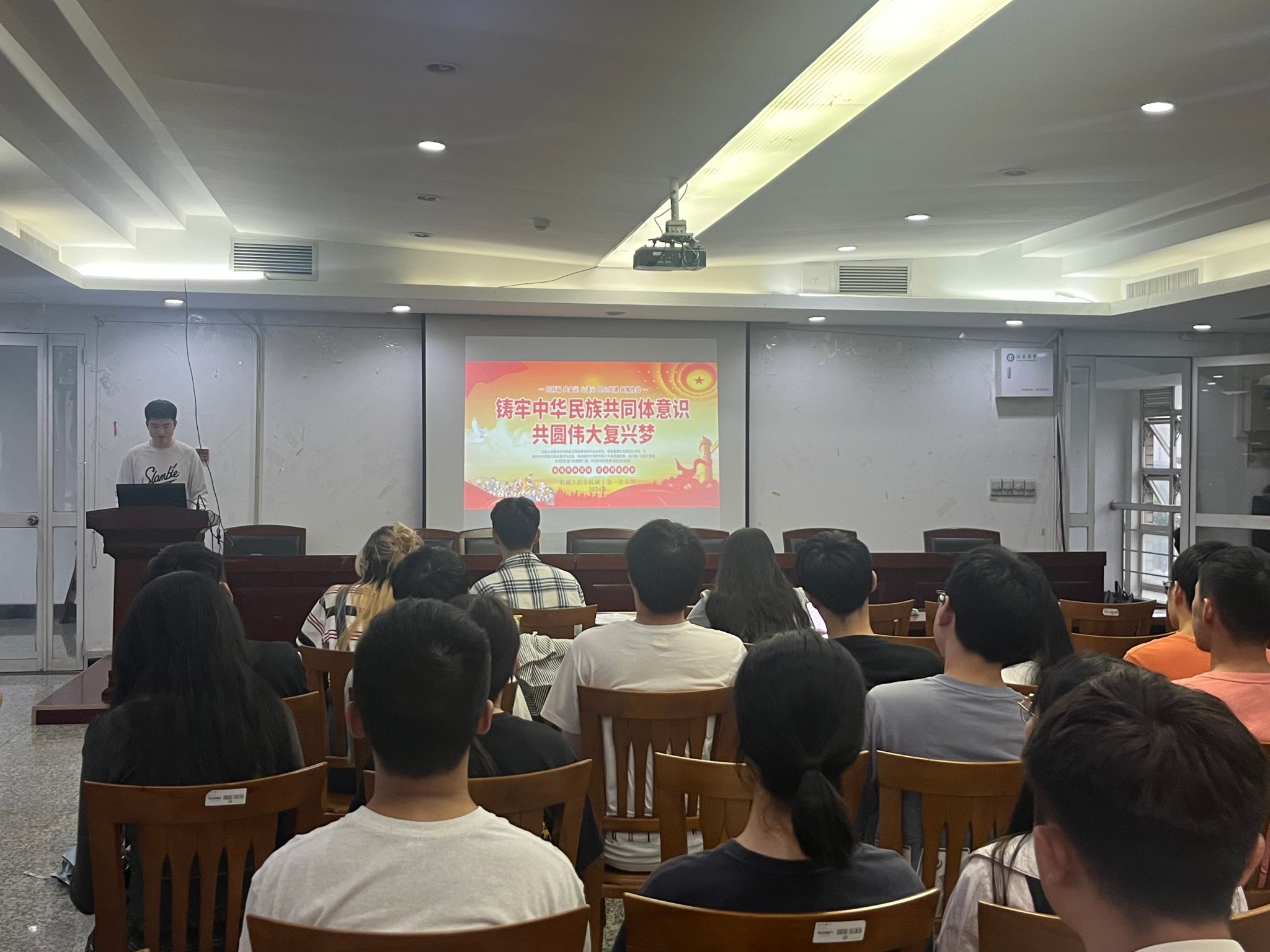 会上,支部统战委员霍佳康跟大家分享了中华民族共同体意识的概念及核心内容,它强调中华民族在思想、价值观、文化传统方面的共同性,以及在共同利益和共同目标下的团结和合作;随后具体讲解了中华民族共同体意识的五大特点,并呼吁大家要积极主动培养中华民族共同体意识,这对维护国家团结、促进民族和谐、推动社会进步以及对个人的成长有着积极的影响。