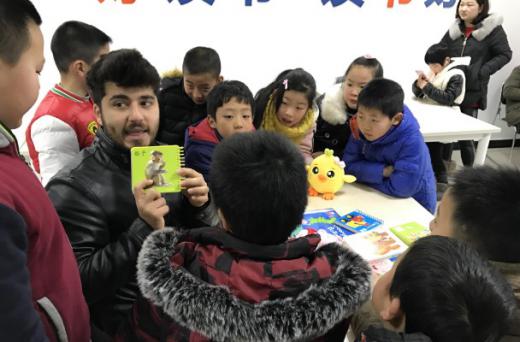 最后,留学生将孩子们分成小组进行了英文绘本教读,活动取得了圆满成功。