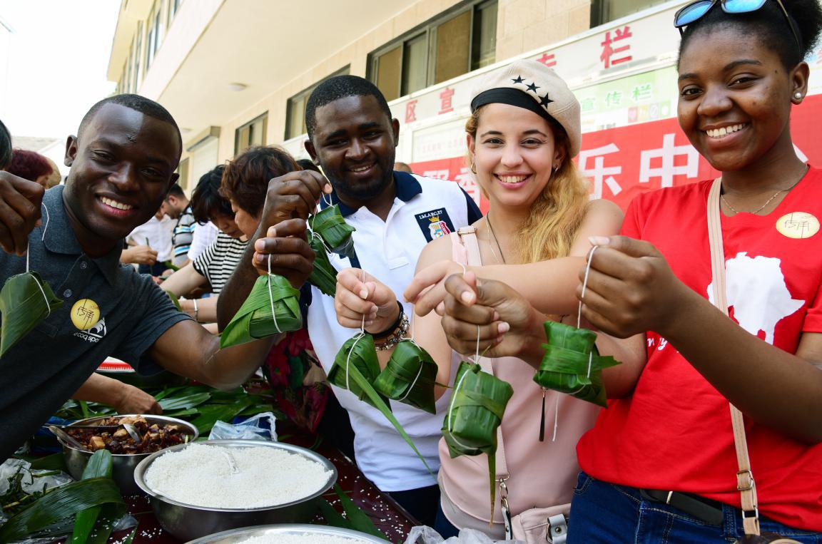 近日,机械学院组织十多名来自古巴、喀麦隆、巴基斯坦、赞比亚、几内亚等国家的留学生门走进镇江市南山街道五凤口社区,体验端午传统文化。