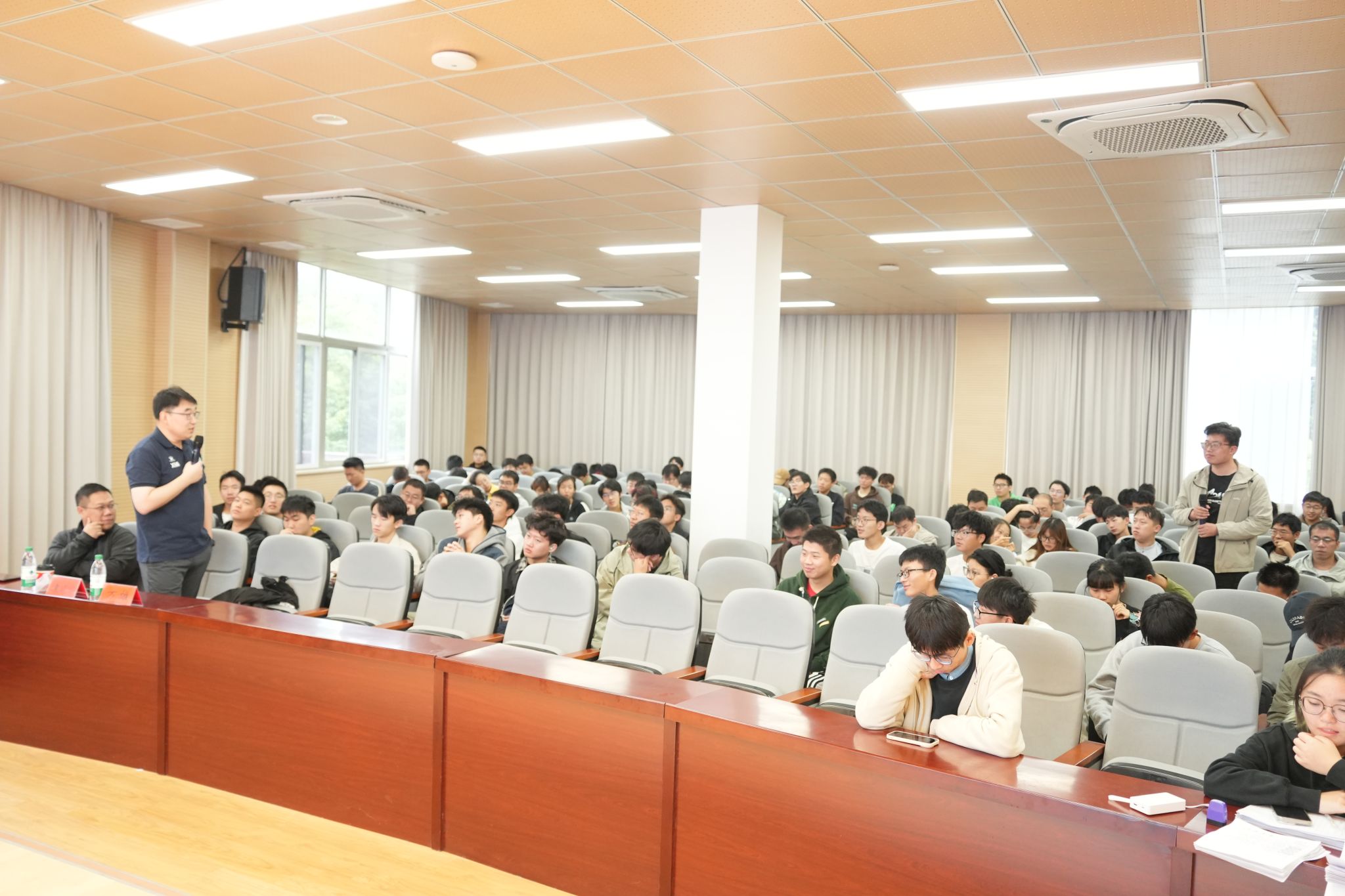 袁晓鸣结合苏州市人才引进政策,从招聘及应聘两方面为学生们介绍地方人才服务中心招才引智的共同需求,同时从创业指导方面进行了深入讲解,并结合自身经历,引导同学们要认真规划个人的职业成长道路,及时抓住机遇,主动出击。他提出,择业时,不仅要考虑个人的兴趣和专长,更要关注国家的战略需求和行业的发展趋势,要将个人的发展与国家的需求紧密结合,要有敢于担当、勇于创新的精神。