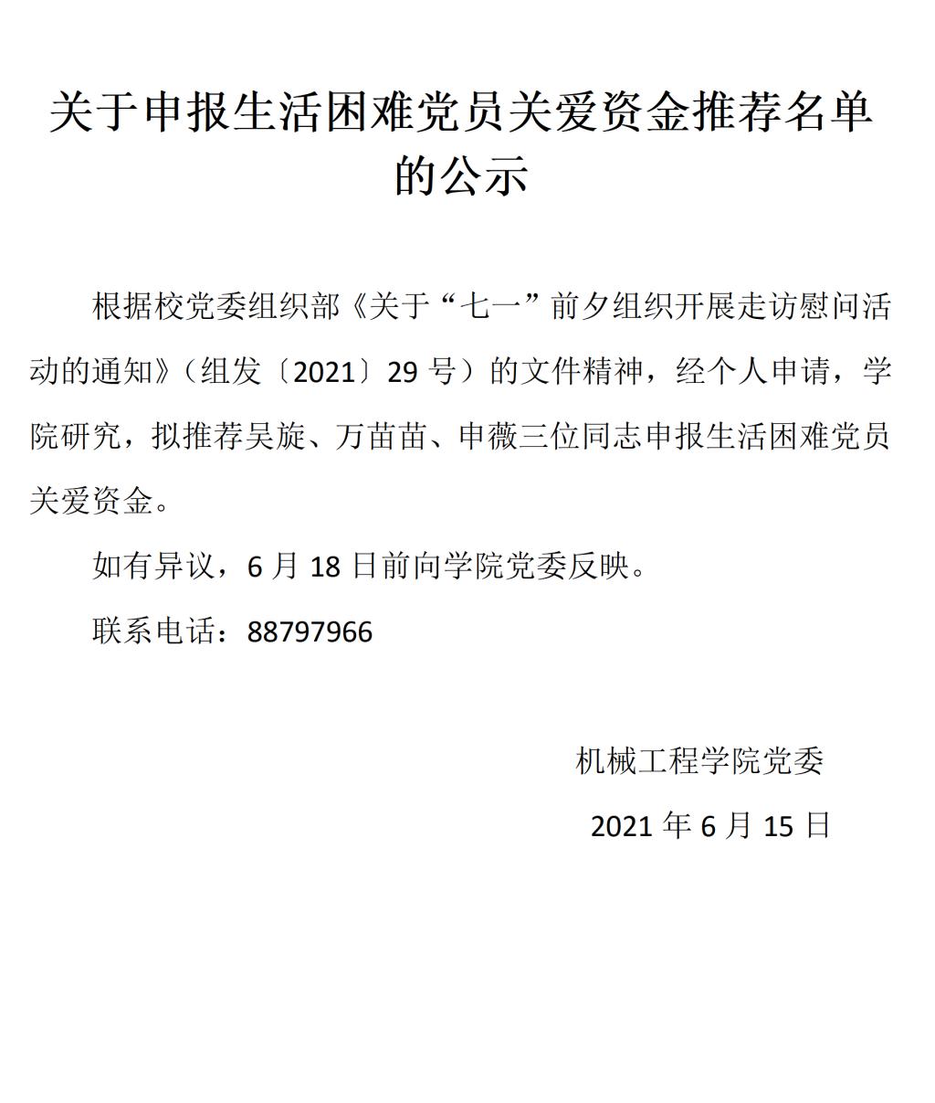 关于申报生活困难党员关爱资金推荐名单的公示