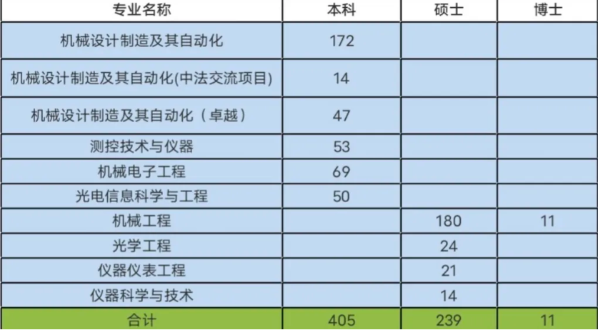 学院现设有机械设计制造及其自动化、机械电子工程、测控技术与仪器、光电信息科学与工程、智能制造工程等5个本科专业,拥有机械工程和仪器科学与技术2个一级学科博士点,机械工程、仪器科学与技术、光学工程3个一级学科硕士点。现有教职工208人(博导36人、教授42人),全日制在校学生2600余人(本科生1600余人,研究生900余人)。学院高度重视人才培养,毕业生普遍受到用人单位的欢迎,就业率稳定在98%以上。