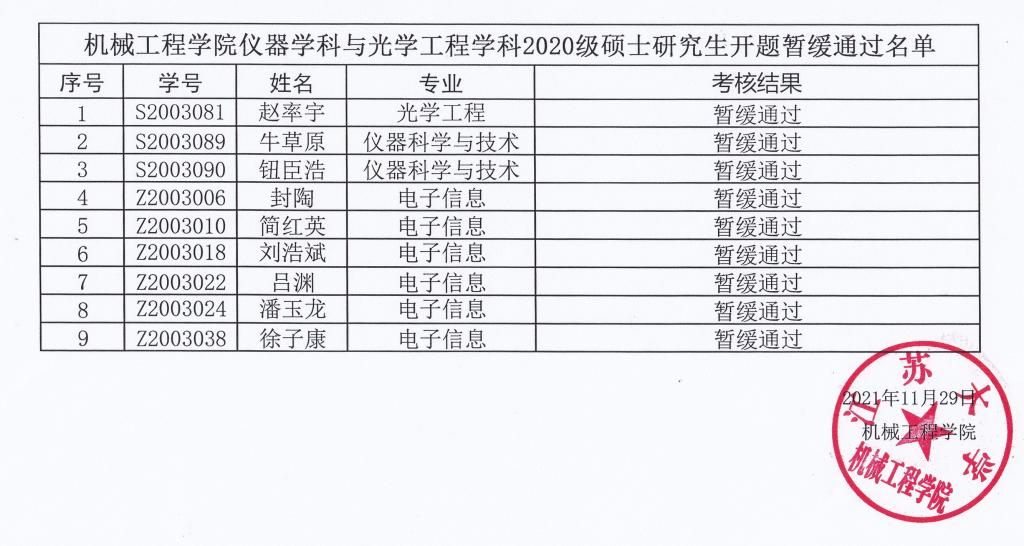 yl6809永利检测中心仪器学科与光学工程学科2020级硕士研究生开题暂缓通过名单公示
