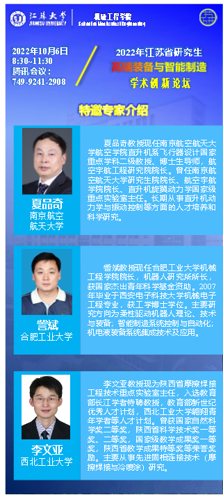 9:00 - 9:30 | 直升机若干前沿技术 研究 | 江苏省教指委工学I类主任 南京航空航天大学教授 夏品奇 | 沈 星 |