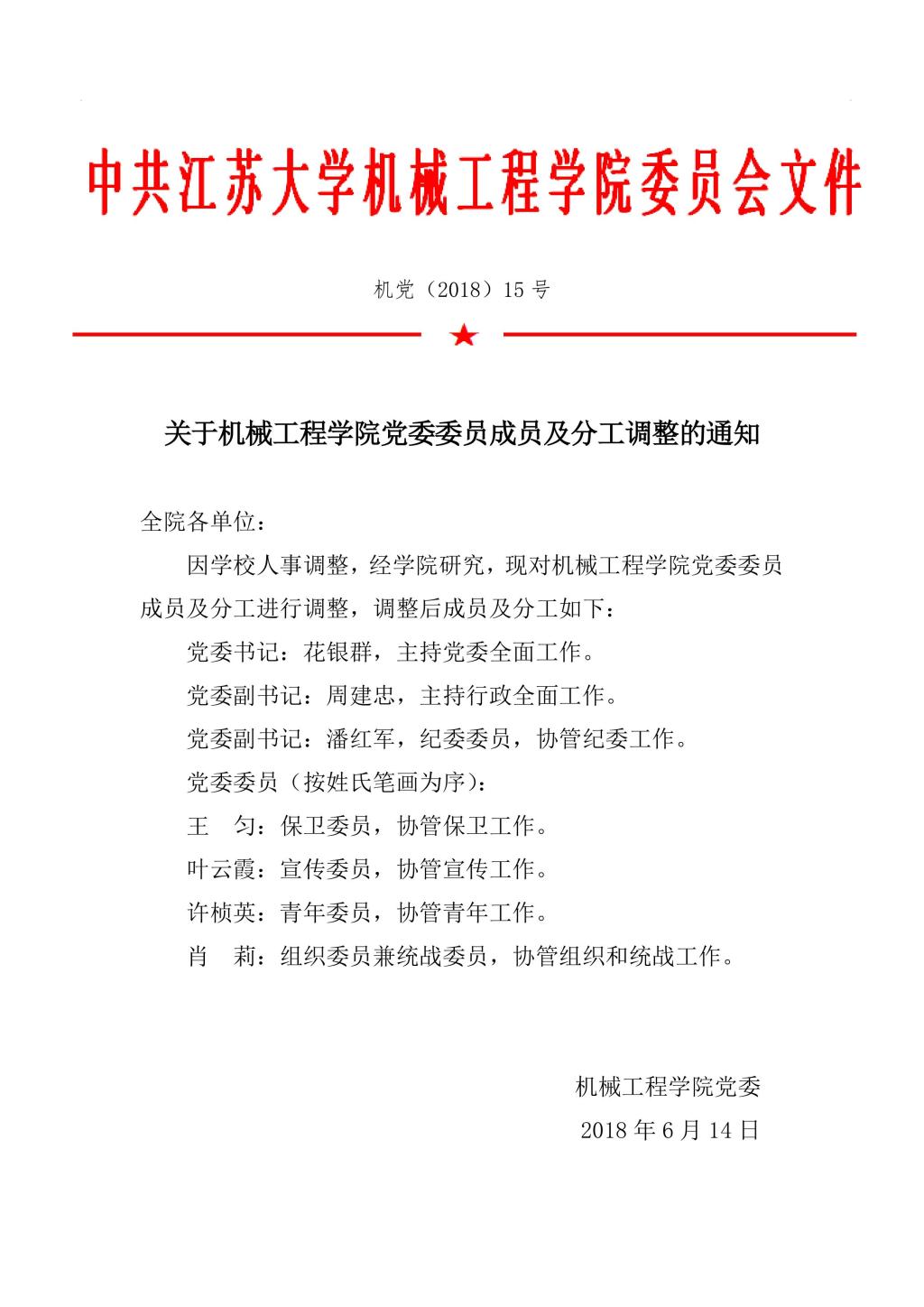 关于yl6809永利检测中心党委委员成员及分工调整的通知