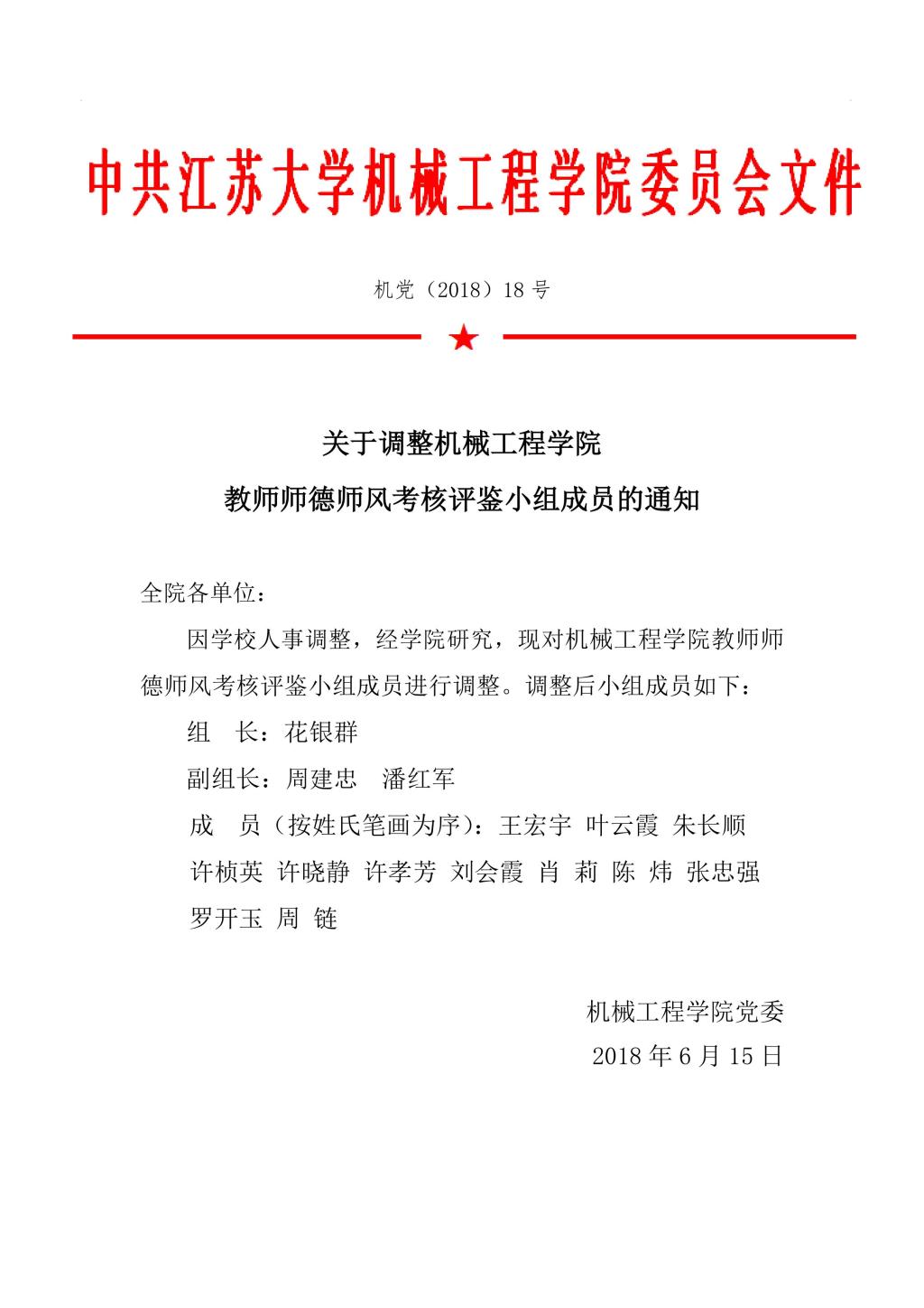 关于调整yl6809永利检测中心教师师德师风考核评鉴小组成员的通知