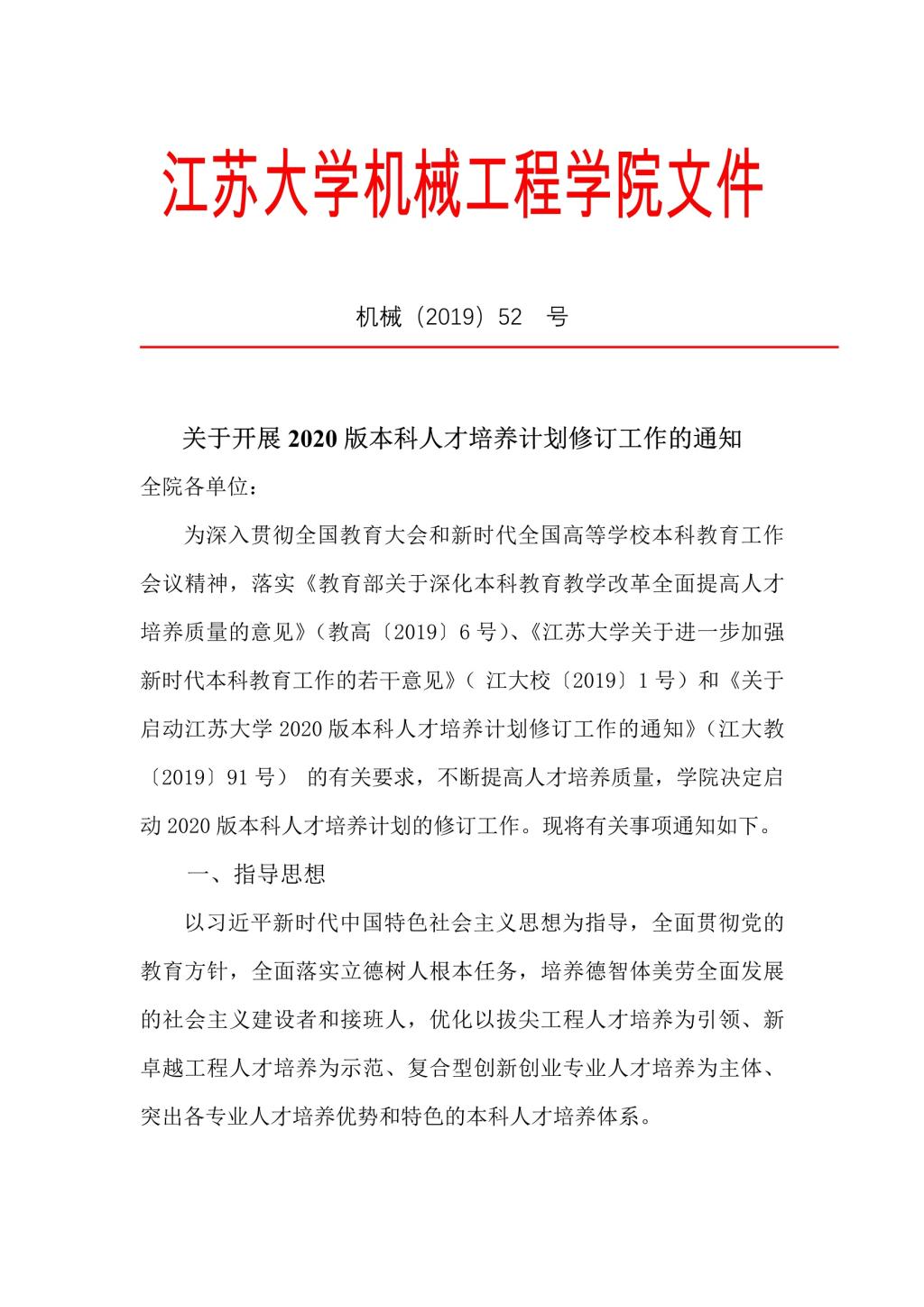 【机械〔2019〕52号】关于开展2020版本科人才培养计划修订工作的通知.docx