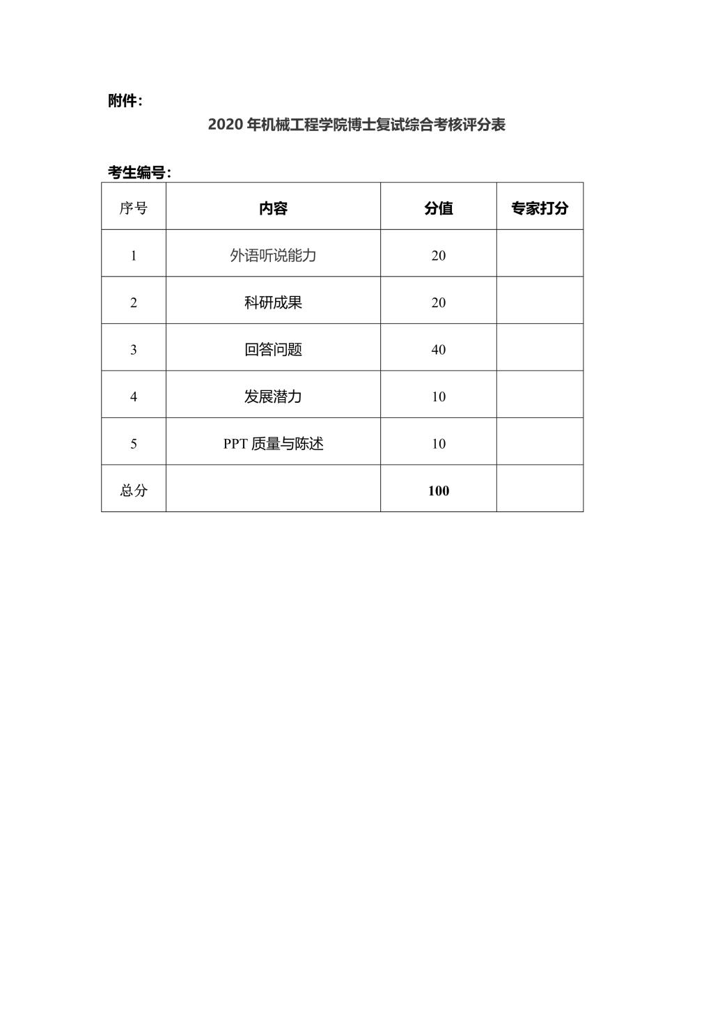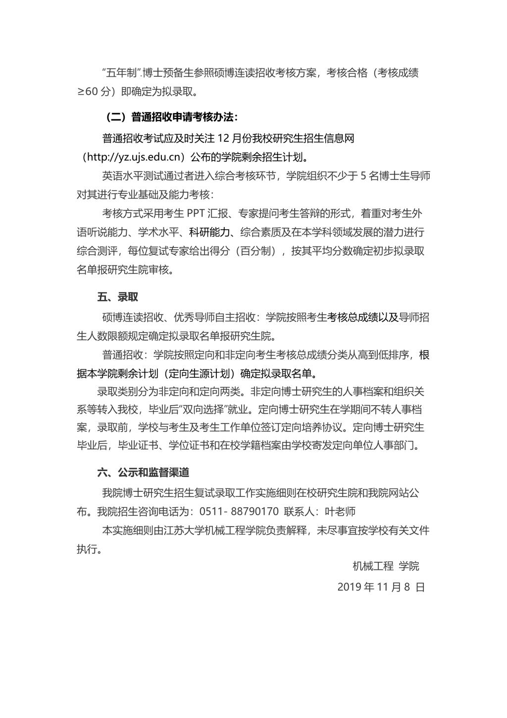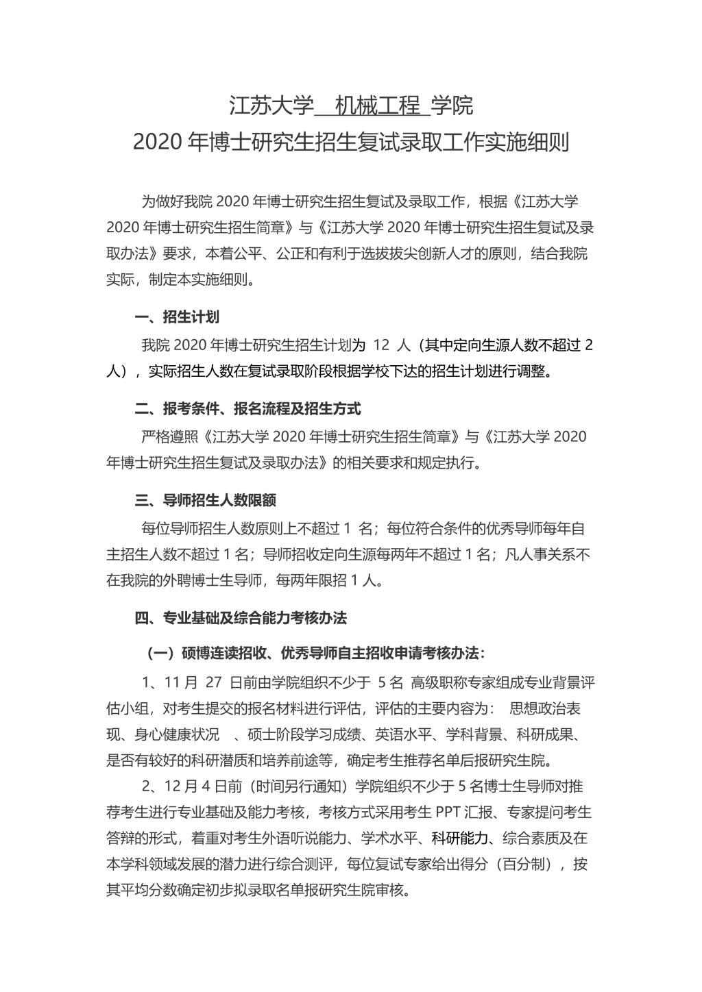 2020年机械学院博士研究生招生复试录取工作实施细则.doc