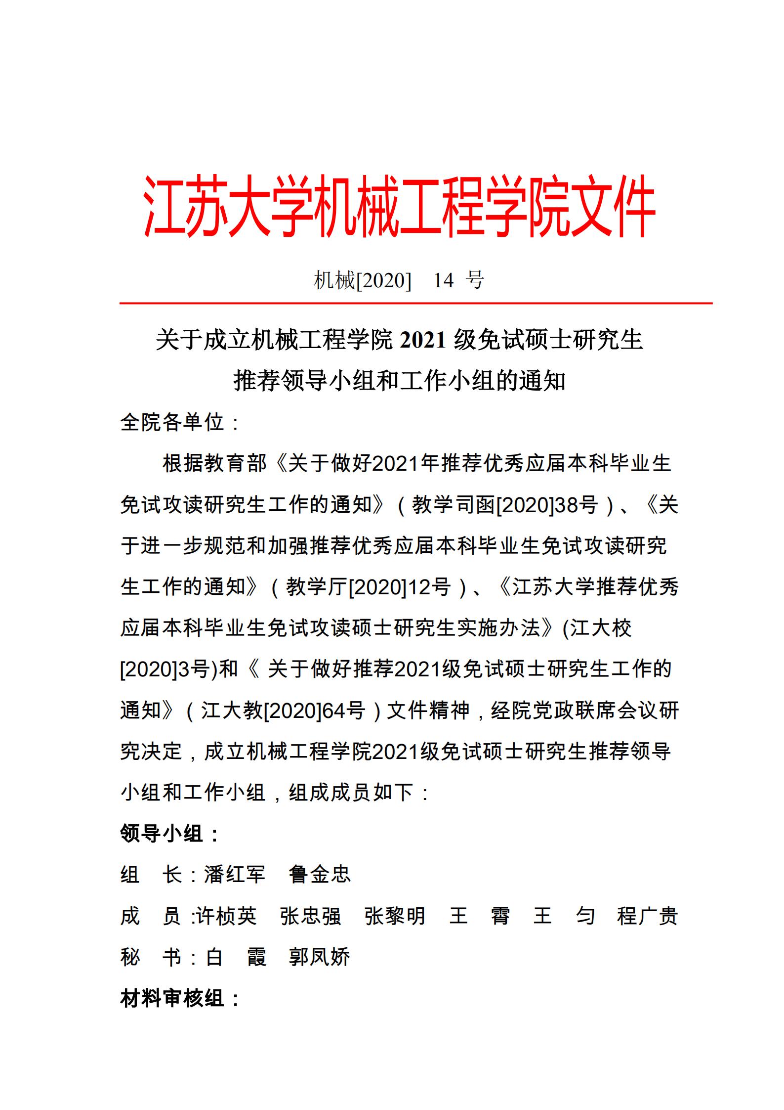 机械[2020]-14号-关于成立yl6809永利检测中心2021级免试硕士研究生推荐领导小组和工作小组的通知.pdf