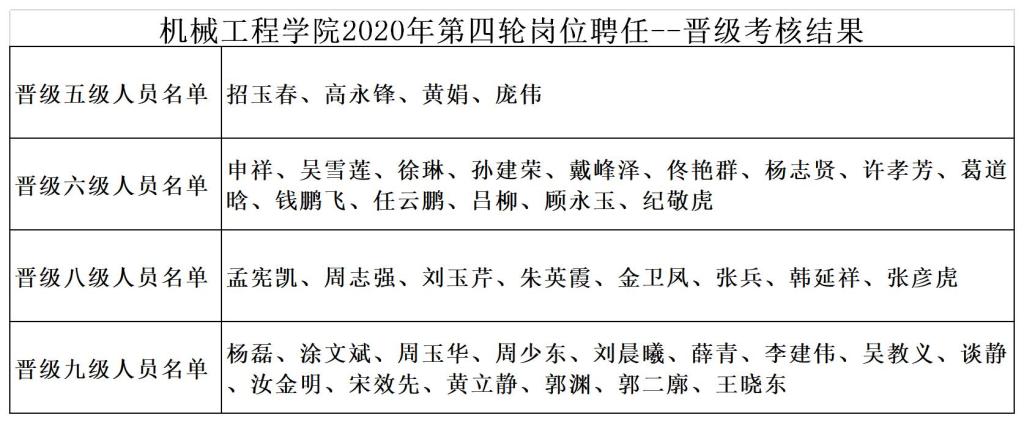 根据yl6809永利官网集团《关于开展学校第三轮岗位聘用聘期考核及第四轮岗位设置和聘用工作的通知》、《关于做好第四轮岗位聘用工作的补充说明》以及《关于做好yl6809永利检测中心岗位设置与聘用工作的通知》(机械[2020]11号)精神,经教师申报,yl6809永利检测中心岗位考核与聘用工作小组评审考核,晋级副教授5级、6级,讲师8级、9级名单如下,现予以公示。
