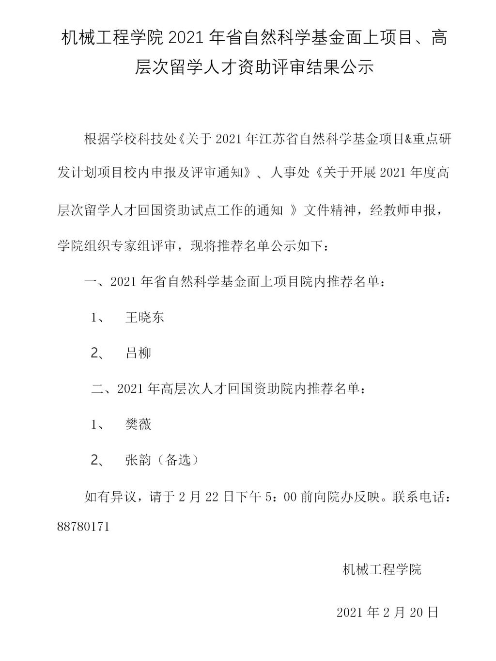 yl6809永利检测中心2021年省自然科学基金面上项目、高层次留学人才资助评审结果公示