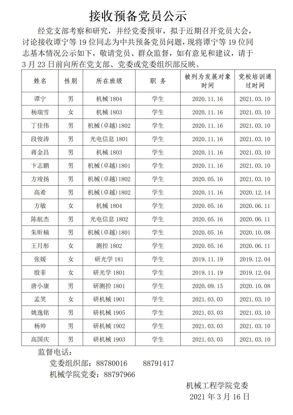 接收预备党员公示(2021年3月16日)