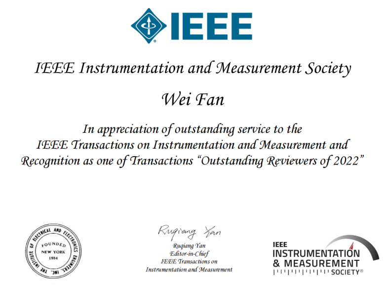 近日,我院樊薇教授应仪器仪表领域国际著名权威期刊《IEEE Transactions on Instrumentation and Measurement》(IEEE TIM)主编严如强教授邀请担任该期刊副主编(Associate Editor)。