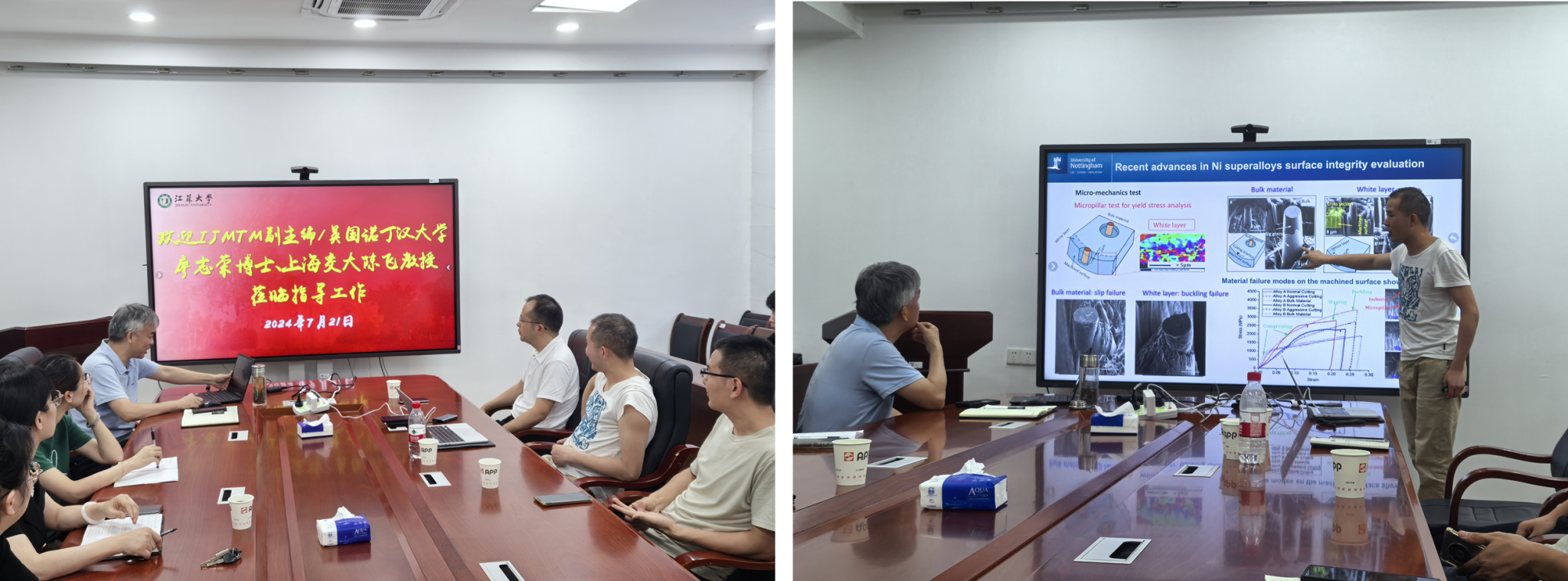 7月21日上午,机械制造领域顶刊《International Journal of Machine Tools and Manufacture》(IF=14)副主编/英国诺丁汉大学廖志荣副教授、上海交大陈飞教授受激光先进制造团队负责人鲁金忠教授的邀请,来学院与团队师生进行学术交流。