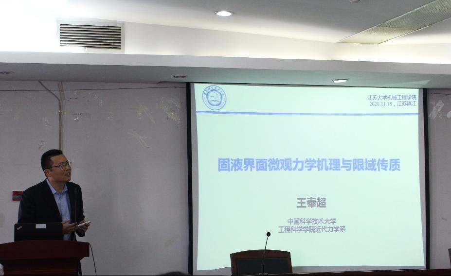 11月16日上午,中国科学技术大学王奉超教授应邀来我院作了题为“固液界面微观力学机理与限域传质”的学术报告和国家自然科学基金申请经验交流报告。机械学院副院长张忠强教授担任主持,学院百余名师生参加了该报告会。