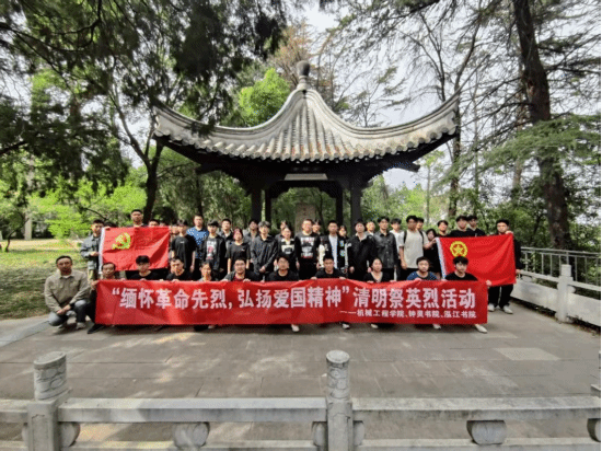 To cultivate the patriotism of young students, strengthen the ideals and beliefs of youth in the new era, and further inherit the legacy of revolutionary ancestors, the School of Mechanical Engineering held a Qingming Festival martyr commemoration activity themed "Commemorating Revolutionary Martyrs, Pursuing Red Memories" at "Wang Long Pavilion" — the patriotic education base of Jiangsu University on April 9. Ling Zhiyong (teacher from the Care Committee for the Growth of Young People (CCPE) of the School of Mechanical Engineering), all Party branch secretaries, representative of academy counselors, representative of student Party members, and representative of active Party members participated in the activity.