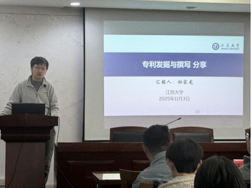 On November 4th, relying on the Party building and ideological platform "Yiyou" Science and Technology Innovation Workstation, the School of Mechanical Engineering, together with the "Yiyou" Science and Technology Innovation Counselor Studio, Hongjiang Academy, and Zhongling Academy, held a patent application experience sharing session with the theme of "Innovation with Seal, Patent Sailing" in the seventh floor lecture hall of the Machinery Building. The event invites Jiang Gaoqiang and Du Jialong, PhD students from the School of Mechanical Engineering, as keynote speakers. Graduate students from the school actively participate in the event.