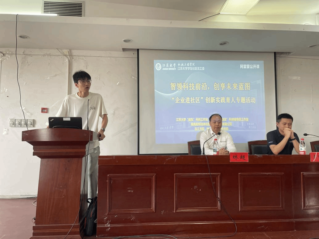 On the afternoon of May 28, relying on the "Yiyou" Science and Technology Innovation Workstation, the School of Mechanical Engineering of Jiangsu University, together with the Student Community Party Working Committee of Jiangsu University, Wenxin Academy and other platforms, held the "Leading the Frontier of Intelligent Technology, Creating and Sharing the Blueprint for the Future" innovative practice funding and education activity in the lecture hall on the 7th floor of the Mechanical Building. Lin Chao, head of the laboratory of Riken Knight Co., Ltd., Li Zhongya, senior product expert, Ji Guangrui, counselor of the School of Mechanical Engineering, and students of Wenxin Academy were invited to participate in this activity. The activity was presided over by Wang Xianliang, counselor.