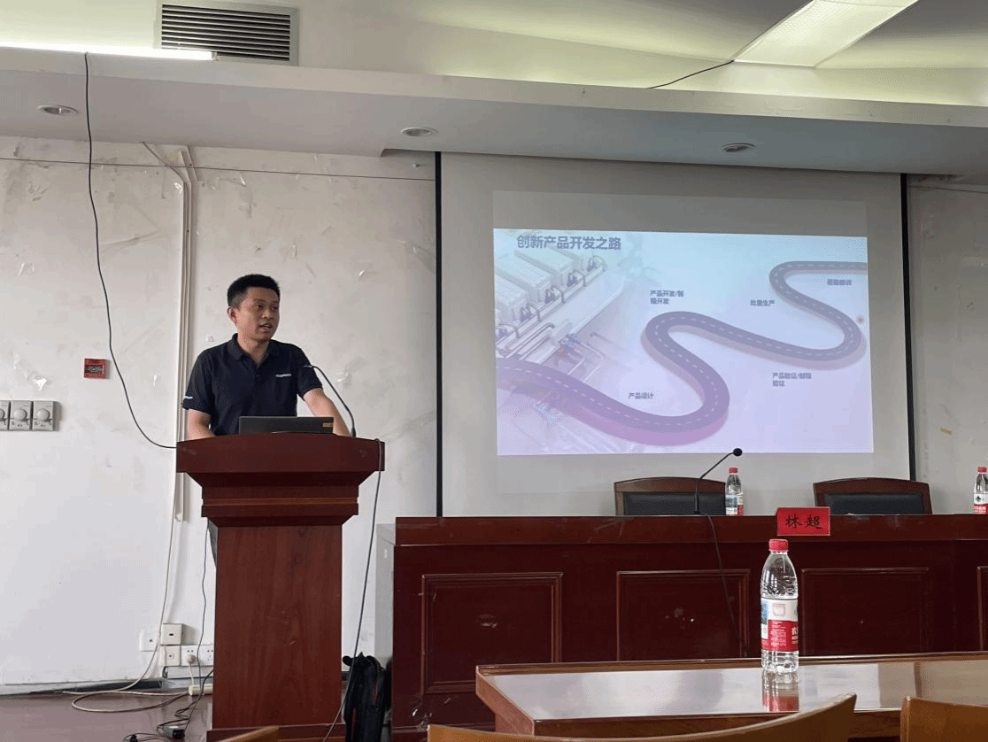 Lin Chao introduced the company's basic overview, scientific research innovation, talent demand and corporate culture. Combined with his rich industry experience, he vividly explained the whole process of the new energy vehicle industry from design drawings to mass production through practical cases, enabling the students to have a clearer understanding of the industry development. He hoped that the students would strengthen their innovative thinking, devote themselves to subject research, enhance their team collaboration ability, and constantly improve their innovative capabilities.