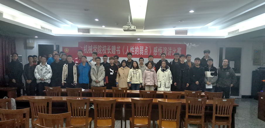 On the evening of December 5th, the School of Mechanical Engineering held the “Book Donation "The Weakness of Humanity" Speech Contest in the lecture hall on the seventh floor of the Mechanical Engineering School Building. Organizer Du Kang of the Organization Department, Deputy Secretary of the Youth League Committee Hong Yajie, Counselor Yu Weijie, and Chairman of the Student Union Chen Hangjie attended and served as judges. There were a total of 19 contestants from various classes of the School of Mechanical Engineering. Freshmen participated in the event.