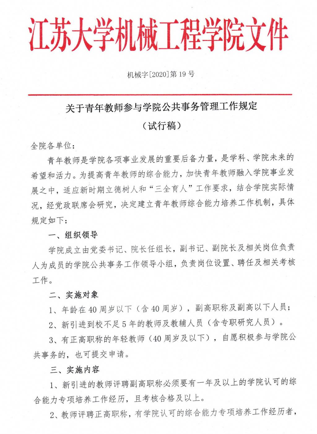 【2020年19号文件】yl6809永利检测中心关于青年教师参与公共性事务工作的规定