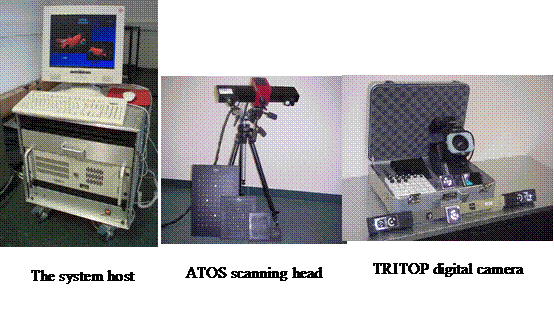 1 ATOS2.0 Optical 3D Scanner:ATOS system is the product of GOM company in Germany,The system consists of the system host, ATOS scanning head and TRITOP digital camera.